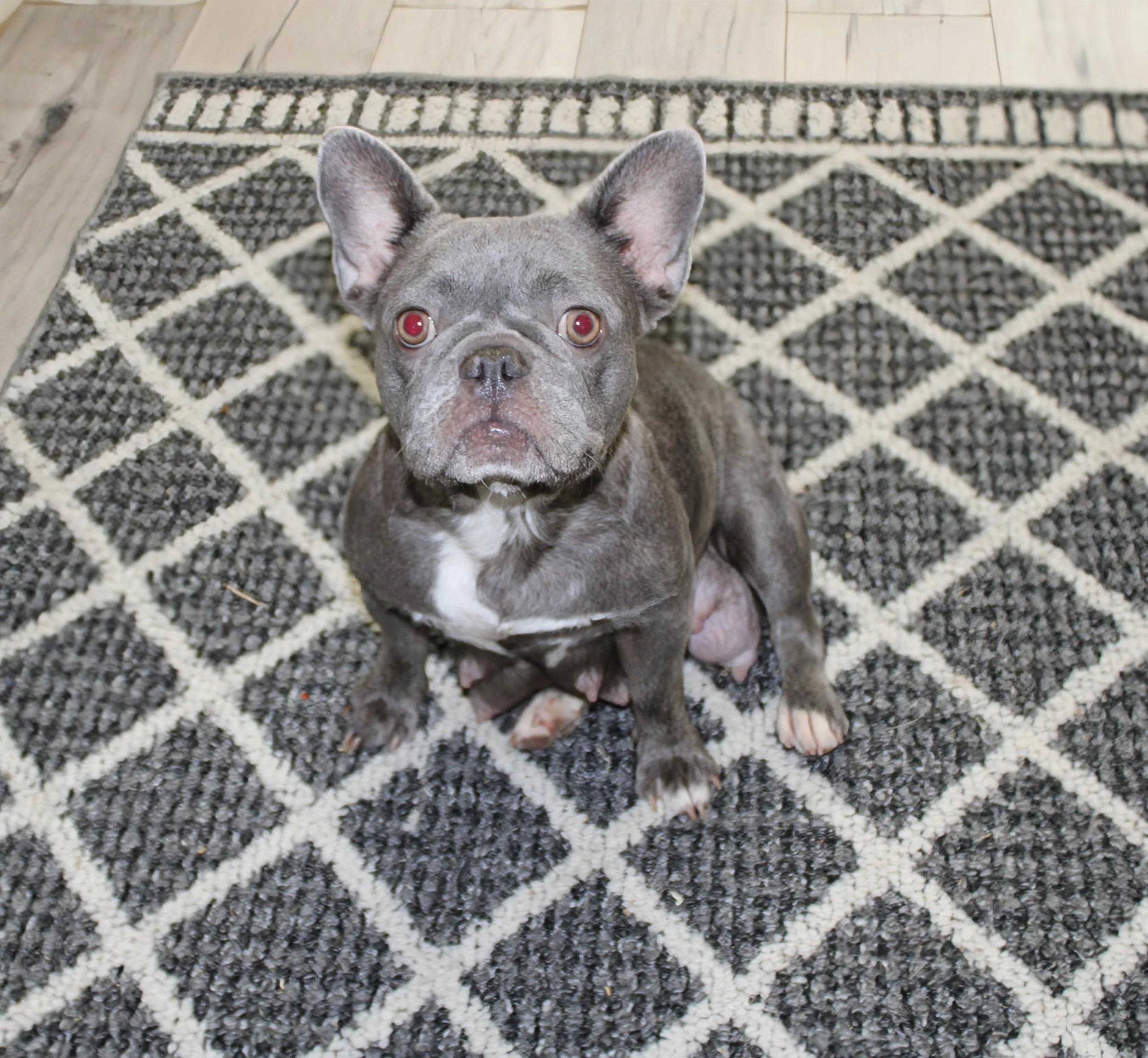 Burberry is a lilac brindle carrying cream. AKC registered. She weighs 22 lbs. She has a sweet laid back temperament, playful & submissive. 2 years old.